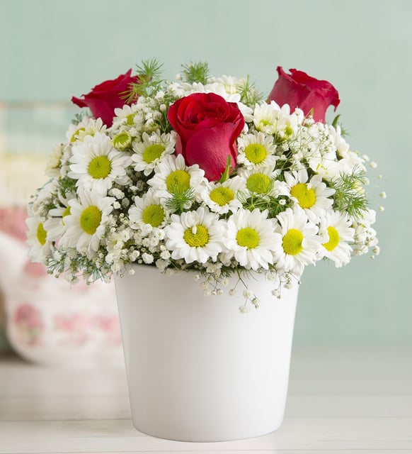 Seramikte Papatya ve Kırmızı Güller