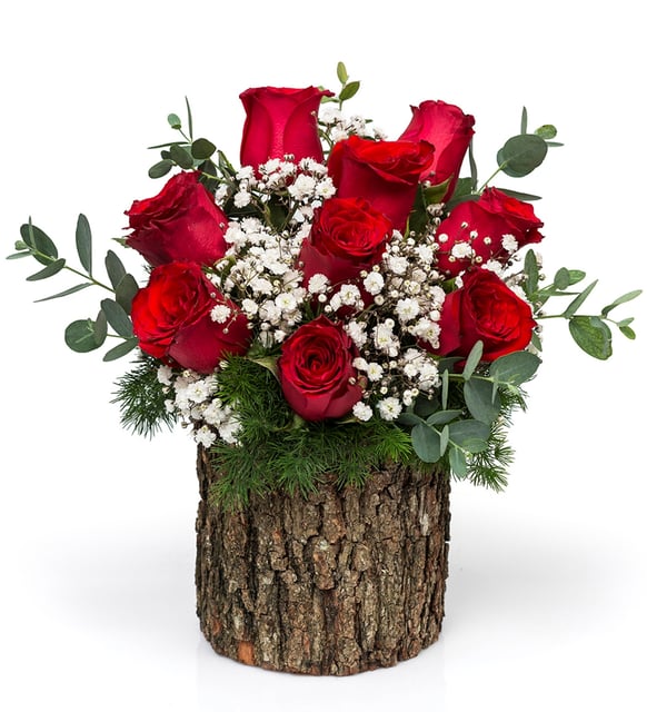 Ahşap Kütükte 9 Gül